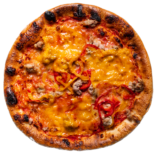 Tomatensauce, Mozzarella, Salsiccia, Peperoni, Cheddar