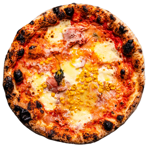 Tomatensauce, Mozzarella, Schinken, Mascarpone, Mais