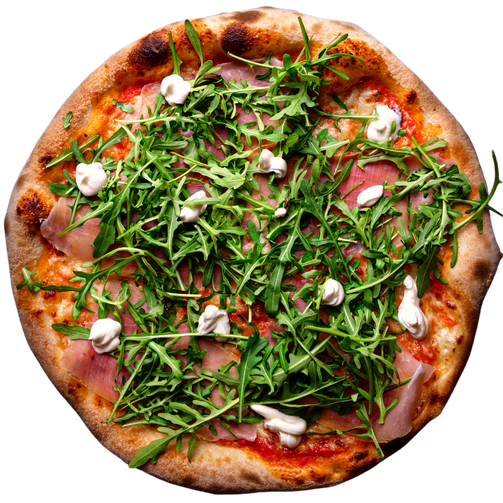 Tomatensauce, Mozzarella, Philadelphia, Rohschinken, Ruccola