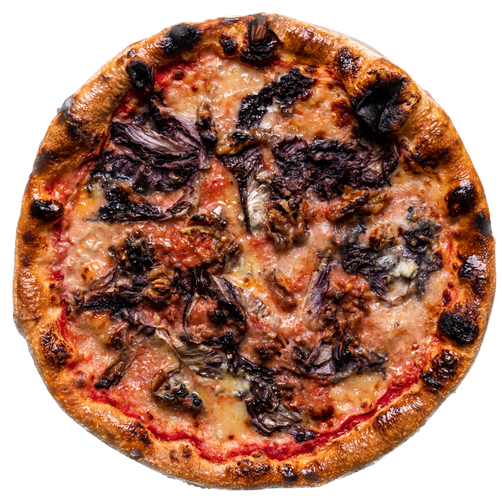 Tomatensauce, Mozzarella, Radicchio, Gorgonzola, Walnüsse