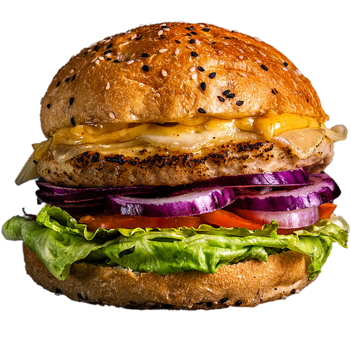 Truthahn Burger, Tomaten, Salat, Zwiebel, Käse, Ketchup, Mayonnaise